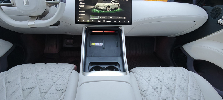 В некоторых топовых китайских комплектациях этот отсек дополняется мини-холодильником (с функцией охлаждения/подогрева), но в российских версиях он обычно идёт без него — просто как просторный бардачок.