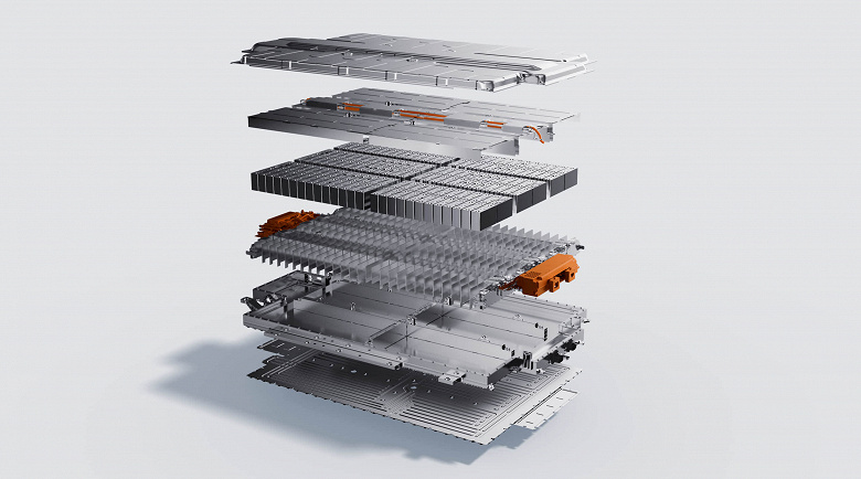 В электромобиле установлена литий-ионная батарея от CATL (NMC или Qilin в топ-версиях) ёмкостью 90,4 кВт·ч в заднеприводных моделях или 116,8 кВт·ч в полноприводных (AWD). Это обеспечивает запас хода до 575–625 км по циклу NEDC (реальный в смешанном режиме ниже, около 450–550 км).