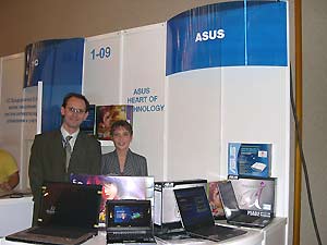 На стенде ASUS была представлена широкая линейка ноутбуков на базе платформы Centrino для мобильных ПК, а также модель ASUS L5GX на базе Intel Pentiun 4.