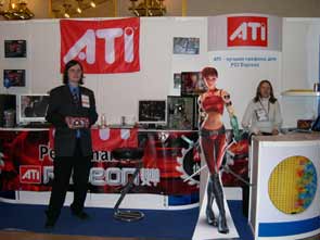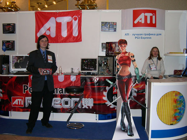 На стенде ATI можно было увидеть агента-красотку Руби в полный рост и ATI Radeon X800XT.