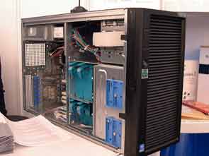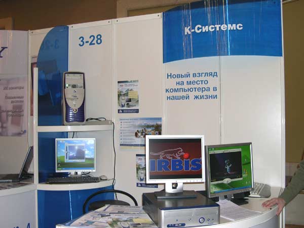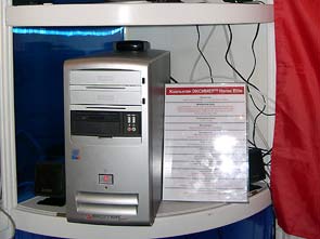 Рядом с серверами демонстрировались графические станции KLONDIKE 3D: в настоящее время линейка представлена тремя моделями. Самая мощная станция выполнена на двух процессорах Intel Xeon 533 2,0-3,06 ГГц (системная плата Intel SE7505VB2 (iE7505)), видеокарта — PNY NVIDIA Quadro FX 2000.