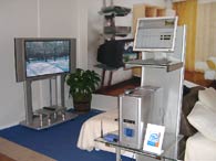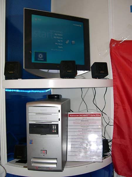 Помимо этого, компания демонстрировала образцы домашних мультимедийных центров на базе персонального компьютера — MediaCenter. Как отметили специалисты компании, анонса этих любопытных моделей, выполненных на последних чипсетах Intel, можно ждать ближе к новогодним праздникам. Видеокарта и ТВ-тюнер — от ATI или NVIDIA.