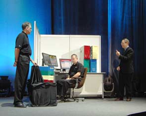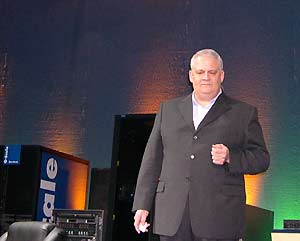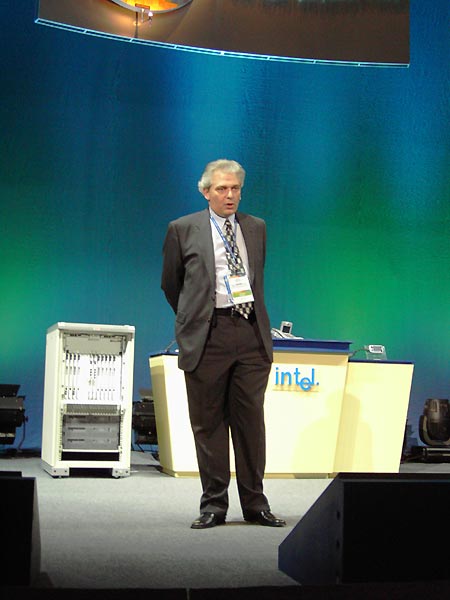 Ричард Вирт (Richard Wirt), ведущий научный сотрудник Intel, генеральный менеджер подразделения программных решений Intel, продемонстрировал перспективные технологии Intel (такие, как Active Management Technology и Vanderpool/Silvervale), позволяющие прозрачно управлять корпоративными информационными сетями, и, разумеется, остановился на полупроводниковых технологиях.