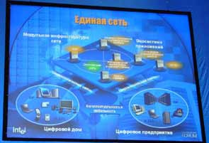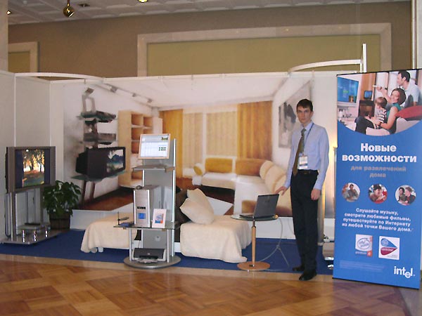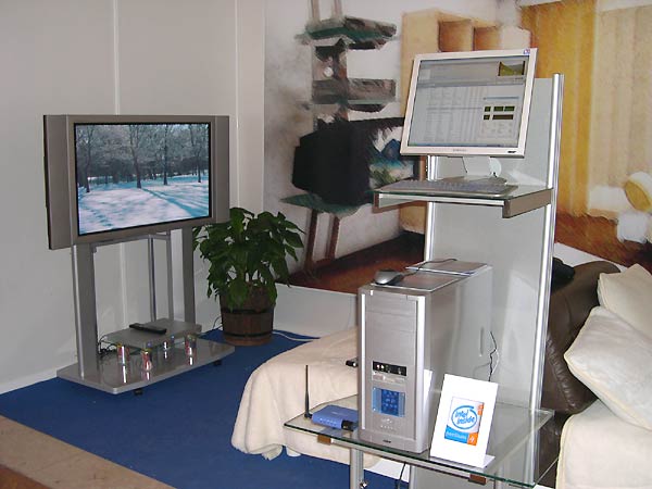 Среди экспозиции подразделений корпорации Intel, представленных множеством стендов, в первую очередь внимание привлекал концепт «Цифрового дома», точнее, «действующий» макет комнаты, выполненный с использованием основополагающих для «цифрового дома» технологий.
