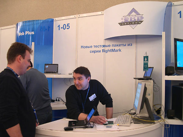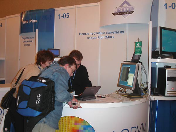 Завершая нашу экскурсию по стендам выставки московского Форума Intel для разработчиков, мы остановились у стенда iXBT.com, где можно было увидеть демонстрацию новых уникальных тестовых пакетов из серии RightMark, созданных программистами iXBT.com:
