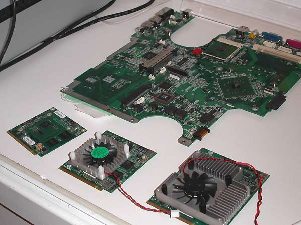 NVIDIA демонстрировала MXM модули, использующиеся для установки мобильных графических чипов в ноутбук.