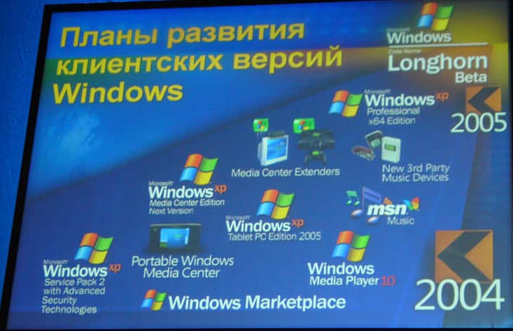 В своем выступлении директор по стратегии Microsoft в России и СНГ не мог не рассказать и о планах компании в отношении выпуска новых версий продуктов: как серверных, клиентских версий Windows, так и мобильных и встраиваемых систем:
