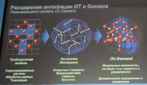 Характерные признаки развивающейся модели On Demand: модульные компоненты, которые легко задаются и управляются, а также общее динамическое определение и управление.