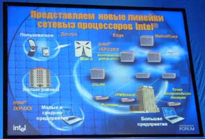 В первый день работы Форума его участники также смогли ознакомиться с тем, как Intel видит проблемы построения информационной инфраструктуры современного предприятия, как определяет способы их преодоления, а также реализованные в кремнии технологии, позволяющие создавать эффективные решения, как для серверной, так и для клиентской части.
