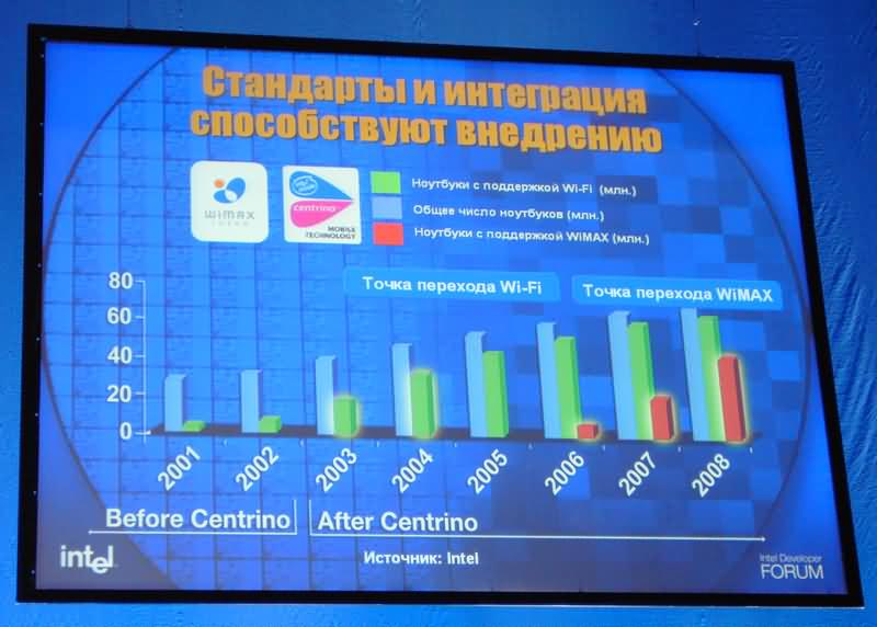 По оценкам специалистов компании, новое поколение платформ WWAN придется на 2006-2007 год, 2007-2008 годы в планах компании обозначены как «точка перехода» WiMAX, именно в эти годы доля ноутбуков, поддерживающих эту технологию, превысит 50% от общего объема поставок мобильных компьютеров.