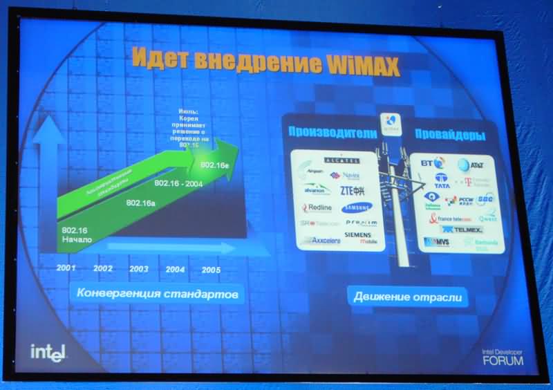 На стендах можно было увидеть образец WiMAX оборудования и плату с первым WiMAX-чипом Rosedale.