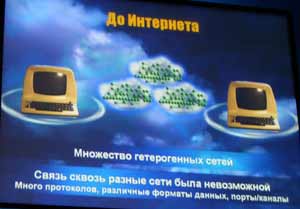 Фрэнк Спиндлер процитировал Лари Петерсона (Larry Peterson), ректора отделения информатики Университета Принстона: «Интернет достиг предела своих возможностей. Теперь нужно начать все сначала, но уже на новом уровне». «Ограничения связаны с инфраструктурой», — именно этот тезис и стал лейтмотивом выступления. Если раньше, до формирования интернета как глобальной сети, в разных уголках мира существовали гетерогенные сети, практически не имевшие связи между собой, то к настоящему моменту использование стека протоколов TCP/IP позволяет «стереть различия» между этими сетями, создается так называемый эффект «универсальной прозрачности» сети.