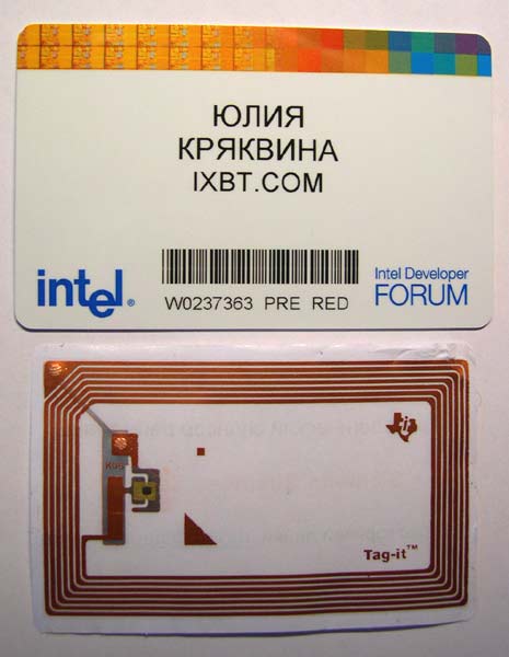 Компания Siemens Business Services предлагала на Форуме Intel для разработчиков уникальные решения в области автоматизации бизнес-процессов и использованием технологий RFID. Отметим, что в бедж каждого участника Форума был встроен чип RFID, позволяющий автоматически учитывать посещаемость мероприятий IDF.