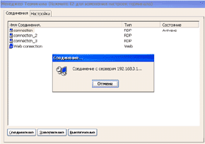 Остается лишь выбрать нужное соединение из списка и произойдет процедура подключения к терминальному серверу. После чего пользователь попадает на свой рабочий стол (сразу или вводя предварительно логин и пароль, в зависимости от настроек).