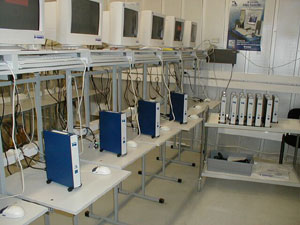 На самом деле существует и модель Termin вертикального типа. Но как не странно, такой корпус пользуется меньшей популярностью у заказчиков, чем лежачий. Поэтому, хоть первой появилась именно «стоячая» модель (на фото справа можно видеть рабочие стенды компании, где и происходили разработка и тестирование устройств), на данный момент продвигается именно терминал с горизонтальным корпусом.