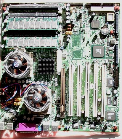Плата выполнена качественно, как и подобает такому производителю, как Tyan. В комплекте поставляются: описание, компакт-диск с драйверами, планка второго COM-порта, FDD- и ATA/100-шлейфы. В процессе установки было отмечено несколько затруднений с вентиляторами, разъемами FDD и питания. Вентиляторы для процессоров Athlon обычно достаточно крупные. Мы использовали Thermaltake Mini Copper Orb, и их оказалось достаточно сложно установить, особенно со стороны, обратной защелке очень близко расположены конденсаторы. А у первого процессора "мешается" и один из модулей DIMM. Порт FDD расположен у нижнего края платы, далеко от реального расположения дисковода в стандартном корпусе, и его шлейф путается с проводами SCSI (впрочем, такая плата и предназначена по идее не для стандартных корпусов все-таки серверная ориентация). Основной разъем питания платы расположен практически в самом центре, что затрудняет подключение к нему, тем более, что кабель насчитывает 24 провода. Однако возможно, что такое расположение FDD и питания лучше подходят для стоечных серверов, так что это не большой недостаток.