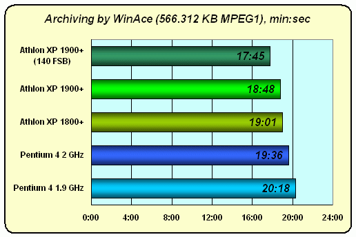 Между прочим, безусловный выигрыш Athlon во всех трех тестах может быть связан еще и с тем, что все приложения за исключением WinAce — "фришные", разработанные энтузиастами. А программисты-энтузиасты редко занимаются такими "вывертами" как оптимизация под разные там SSE2 :) Значит ли это, тесты в известной степени необъективны? С какой стати?! В конце концов, уважающий себя законопослушный гражданин обычно при выборе между сходным по функциональности коммерческим и free software, выбирает обычно последний, потому что за него вполне легально ничего не нужно платить. Значит, и предпочтения авторов такого софта, вполне нам по духу подходят :)