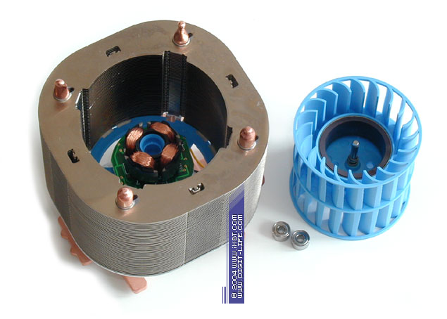 Традиционный подход таков: берется несколько тепловых трубок, на них нанизывается группа широких прямоугольных пластин, все это дело закрывается защитным кожухом, и на одном торце (или с обеих сторон) результирующего «кубика» устанавливаются осевые вентиляторы. Серьезный изъян данного подхода неэффективный продув толщи пластинчатого «кубика» (осевой вентилятор, как правило, «генерирует» весьма слабое статическое давление воздушного потока, и при уплотненной посадке теплорассеивающих пластин, скажем, с шагом менее 1 мм, он пасует перед колоссальным гидравлическим сопротивлением такого «кубика»). Повысить эффективность тут можно только двумя путями: либо увеличивать шаг размещения пластин (что будет сопровождаться неминуемым укрупнением габаритов системы), либо ставить чудовищно мощные вентиляторы (и «наслаждаться» чудовищно высоким уровнем шума).