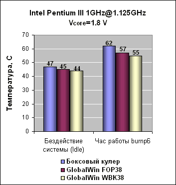 По эффективности охлаждения кулеры GlobalWin FOP38 и особенно GlobalWin WBK38 вполне могут претендовать на звание "чемпионов мира"! Однако существует ряд серьезных недостатков, которые могут несколько поколебать статус победителя: