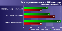 Как нам кажется, последнее слово в этих задачах Sandy Bridge скажет тогда, когда в программах появится поддержка нового набора векторных инструкций AVX. Пока же это «чистая» математика, причем очень хорошо параллелящаяся, так что чем больше потоков вычисления — тем лучше: сила солому ломит. Однако высокая эффективность каждого потока вычисления сказывается и здесь. В частности, новые Core i5 быстрее старых с тем же числом ядер и на сравнимой тактовой частоте процентов на 10 (глядя на диаграмму, не забываем, что i5-760 в буст-режиме работает на частоте 2,93 ГГц, а i5-2300 — лишь 2,9 ГГц). Но переход на более тонкий техпроцесс позволяет новым процессорам работать на более высоких частотах, вследствие чего они могут конкурировать и со старыми Core i7, и с шестиядерными Phenom II X6. Причем с последними — даже несмотря на их бо́льшую частоту ;) Впрочем, чудес на свете не бывает, так что шестиядерные Core i7 недосягаемы, однако они и стоят намного дороже. Поэтому второе место Core i7-2600 на деле не поражение, а блистательная победа.