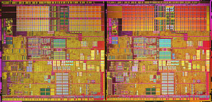 Легко заметить, что даже фотографии ядер у всех «наследников Prescott» очень похожи, а на фото двуядерного Smithfield два процессора видны совершенно четко  они так двумя одинаковыми «кусками» на кристалле и лежат.
