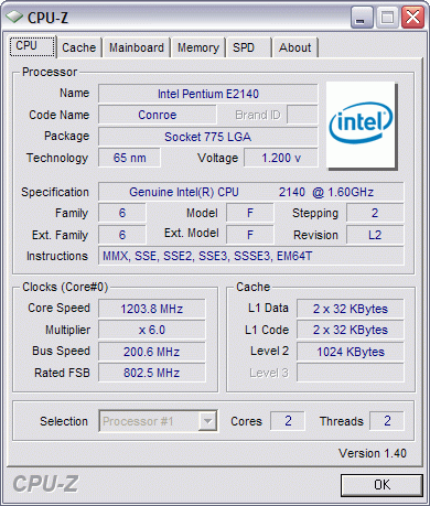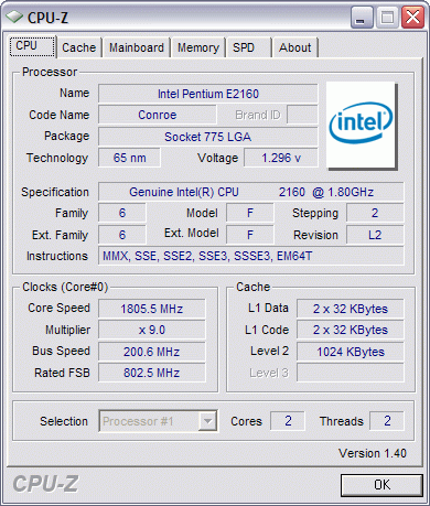 С Pentium E2140/2160 всё проще: это, фактически, ещё более усечённые нижние Core 2 Duo. Как и у Core 2 Duo E4xxx, у них 800-мегагерцевая шина, нижний порог частоты стал ещё ниже, а кэш урезали ещё в два раза, так что теперь общий для обоих ядер L2 составляет всего один мегабайт. Глядя на это чудо маркетинговой мысли, мы с ужасом ждём и теряемся в догадках: что ещё «отрежут» грядущему Celeron на аналогичном ядре? :)