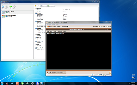 Ещё одна экспериментальная группа тестов для ранее не исследованной нами области применения. Ввиду вышесказанного, мы решили, что начинать проще с простого, поэтому особой изысканностью разработанные нами тесты не отличаются: в данном случае гораздо важнее была стабильность работы и результатов, и предсказуемость поведения. Суть тестов состоит в следующем: на систему устанавливается бесплатная для некоммерческого использования (это, следует заметить, немалое достоинство) виртуальная машина Sun VirtualBox, после чего на неё инсталлируются две «гостевые» ОС: Windows XP Professional x86 SP3 и Ubuntu Linux x86. Далее, под управлением обоих «виртуальных» и основной «нативной» ОС (напомним, что это Windows 7 Ultimate x64), исполняется один и тот же бенчмарк, после чего мы имеем возможность оценить процент падения производительности под «виртуальными» ОС. Бенчмарк, который одновременно достаточно прост и предсказуем, не зависит от дисковой подсистемы (с этим аспектом производительности у виртуальных машин, исполняемых под управлением другой ОС, дела традиционно «не очень»…), существует в версии как для Windows, так и для Linux, и при этом создаёт ощутимую нагрузку хотя бы на две подсистемы — процессор и память, найти было не очень легко, но мы с данной задачей справились. Это оказался встроенный бенчмарк 7-Zip. Конечно, можно посетовать на то, что он несколько «синтетичен», однако вышеперечисленный список достоинств, с нашей точки зрения, перевешивает недостатки.Используемые тесты и ПО: