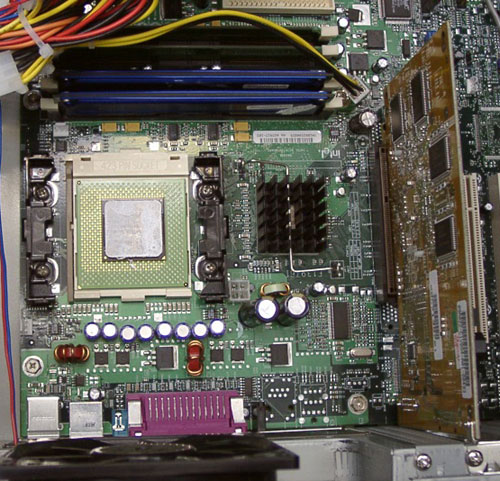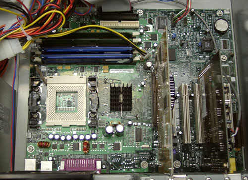 Продолжим. Вот система во всей красе — материнская плата на чипсете i850 — D850GB от Intel,