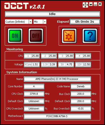 Хотя множитель у Phenom II X4 940 разблокирован, сначала мы провели разгон с фиксированным множителем, за счет увеличения опорной частоты.