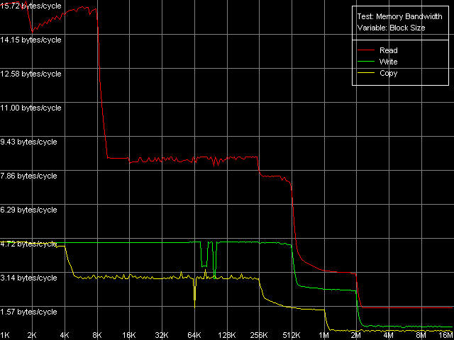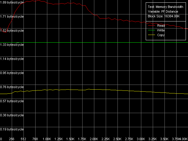 Во всех случаях, где это возможно, будем использовать как MMX-, так и SSE/SSE2-регистры. Напомним, что методы Prefetch/Non-Temporal store реализованы в тесте Memory Bandwidth, а методы чтения/записи строк кэша в тесте D-Cache Bandwidth.