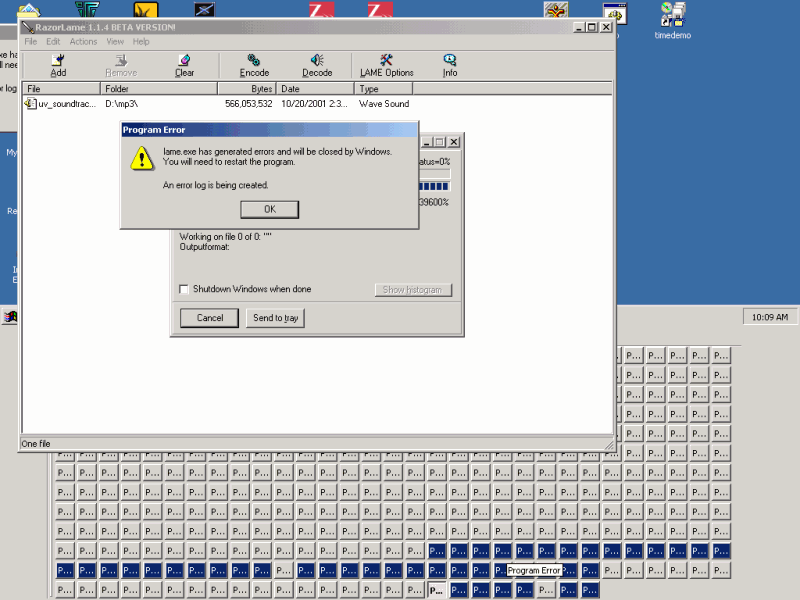 Первый реальный тест и первый сюрприз: процессор VIA не смог стартовать. Людям с крепкими нервами мы предлагаем взглянуть на скриншот, прочим же просто сообщим, что кодек Lame при кодировании на С3 вылетал с ошибками. У остальных процессоров процедура тестирования завершилась успешно, из интересных моментов отметим превосходство Celeron «Tualatin» над Duron.