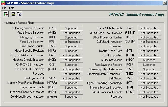 - Поддержка наборов процессорных инструкций MMX и SSE