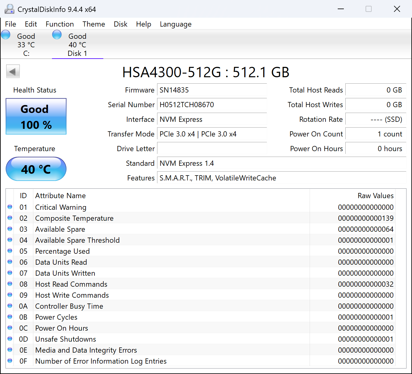 | Horizont H-Storage HSA4300-512G 512 ГБ (PCIe Gen3) | 2377,3 | 2382,8 |