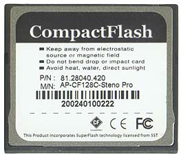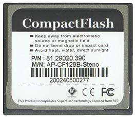 Apacer для CompactFlash выпускает Card Photo Steno и Photo Steno Pro, емкостью по 128 МБ каждая. При этом производитель заявил очень высокие скорости записи и чтения для этих карт: 5 МБ чтение и 2,4 МБ запись для простой карты и 4 МБ для карты с добавкой Pro. Возможно, существует испытательный стенд, на котором эти скорости могут быть достигнуты. Проблема, однако, состоит в том, что быстродействие определяется не только картами, и если компьютер можно модернизировать и установить оптимальное для имеющихся карт устройство считывания, то камеры приходится воспринимать как нечто неизменное и подбирать карты к ним. Уж коль скоро в названиях этих фигурирует Photo, я попытался проверить возможности этих карт при работе с камерами Casio QV 4000, Minolta 7Hi и Canon EOS D60. Эти модели представляют собой типичные 4, 5 и 6 Мп камеры. Владельцы аппаратуры именно этих классов сегодня начинают ощущать дискомфорт, ожидая, когда же камера будет готова сделать следующий снимок. Естественно, я попытался достичь заявленной производительности и при простом подключении карт к компьютеру. Здесь выяснилось, что реально большие скорости удается получить только при подключении через IEEE1394. Несмотря на то, что стандарт PCMCIA должен обеспечивать очень высокие скорости передачи данных, мне на четырех компьютерах с разными контроллерами и разными процессорами не удалось преодолеть барьер в 1,5 МБ. При этом разница в скорости записи и чтения все равно наблюдалась.