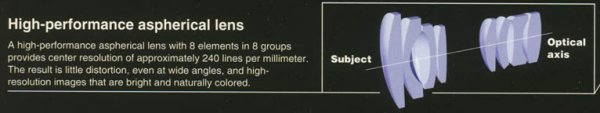 Судя по данным фирмы, двукратный зум объектив камеры имеет превосходные характеристики, но никаких