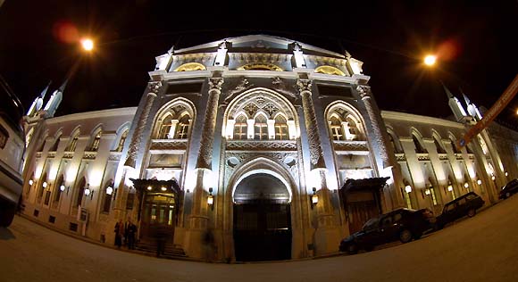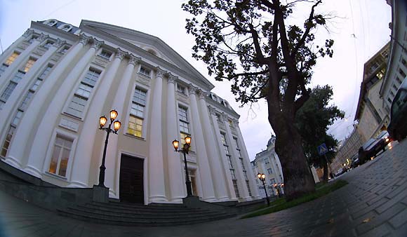 Как видите, если на снимок, сделанный Пеленгом, влезает все здание музыкального театра, Зенитаром — большая его часть, то при съемке, в общем-то, вполне широкоугольным для пленки объективом с фокусным расстоянием 28 мм мне пришлось повернуть аппарат на 90 градусов только для того, чтобы здание вошло в кадр по высоте.