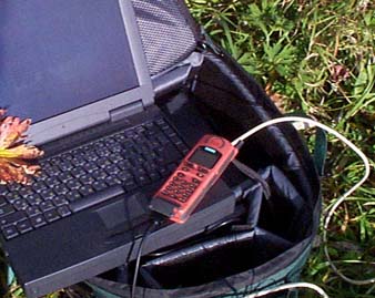 Переходим собственно к тому, ради чего все было затеяно, к репортажу из леса. Для проведения эксперимента я взял с собой камеру Kodak DC120, изображение записывалось на Сompact Flash и передавалось в компьютер MITAC 5026 через PCMCIA адаптер. К последовательному порту компьютера через соединительный кабель и программный модем фирмы SoftRadius был подключен сотовый телефон стандарта GSM 900 SIEMENS S10, работающий в сети МТС.