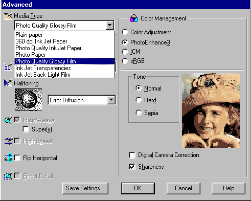 пленки. Если в настройках задать фотобумагу, то в отпечатках наблюдается явный