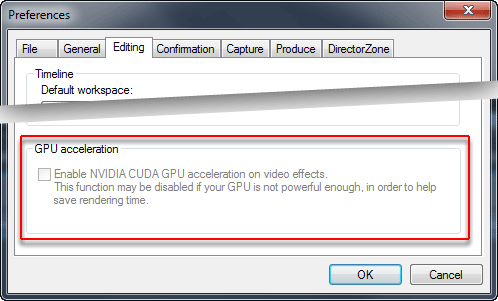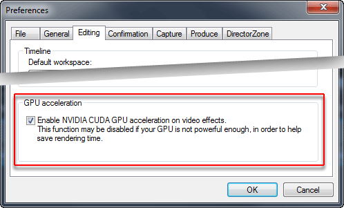 Но заглянем в настройки программы. Оказывается, Cyberlink PowerDirector "дружит" с NVIDIA CUDA не только лишь во время завершающего этапа монтажа кодирования, но также задействует данную технологию непосредственно при самом монтаже (и в самом деле, при установленном в настройках программы флажке многослойные композиции проигрываются в окне просмотра значительно увереннее, а переходы и вовсе перестают подтормаживать, даже если на таймлинии находится трудноредактируемое видео в "тяжёлом" формате).