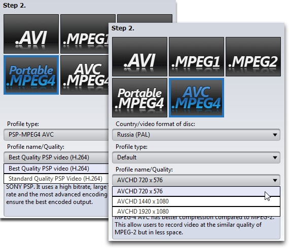 - AVCHD 1920x1080 (данный формат предназначается для дальнейшего авторинга Blu-ray диска);