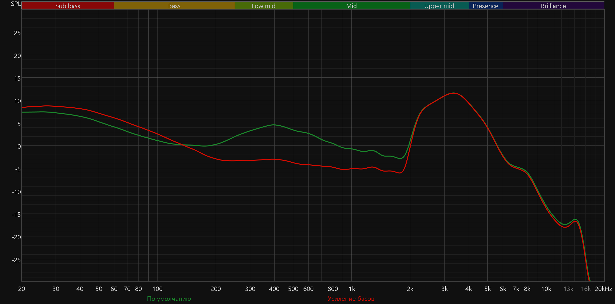 Характер звучания снова изменился — и снова не в сторону нейтральности и баланса. Наушники настроены ярко, с выраженными акцентами и фокусом на эффектной подаче. Такой звук может прийтись по вкусу любителям поп-музыки, хип-хопа и электронной сцены, но для продолжительного прослушивания и более сложных жанров настройка по умолчанию вряд ли подойдет. К счастью, в приложении есть полноценный эквалайзер и несколько удачных пресетов, которые позволяют быстро добиться более ровного и сбалансированного звучания.