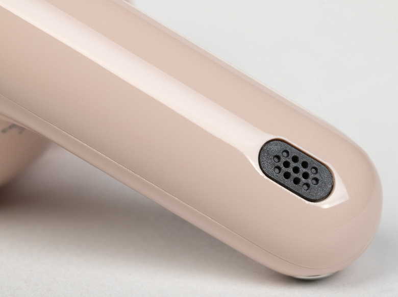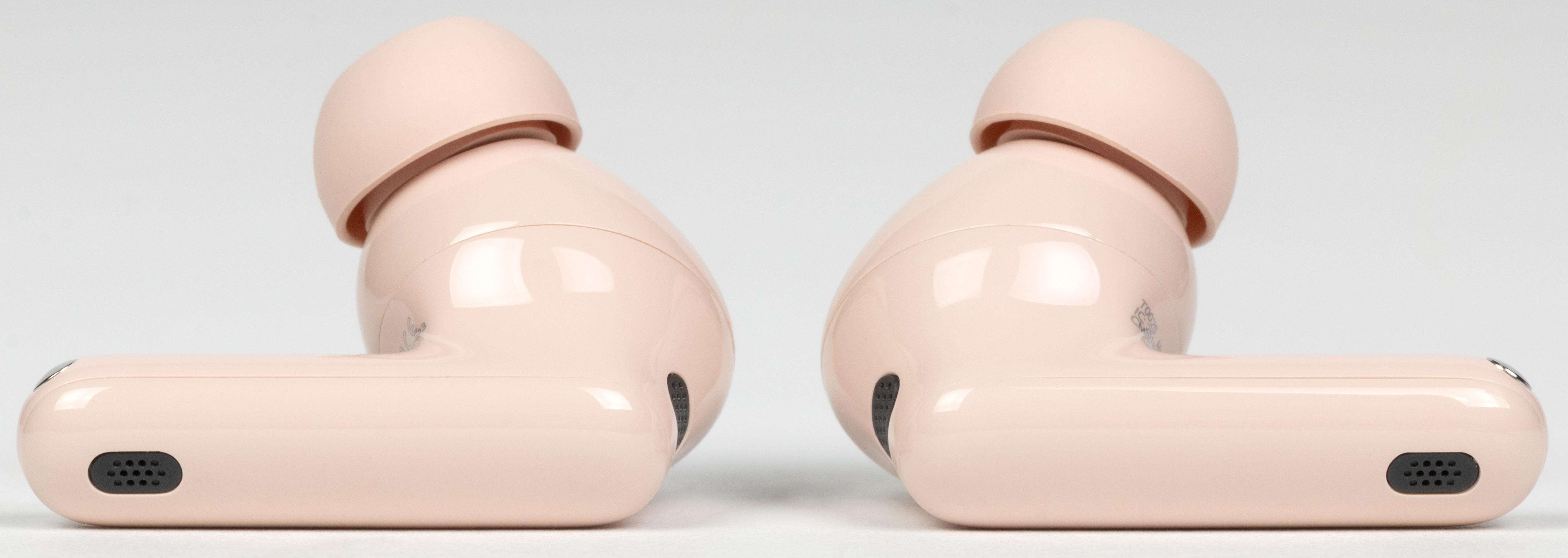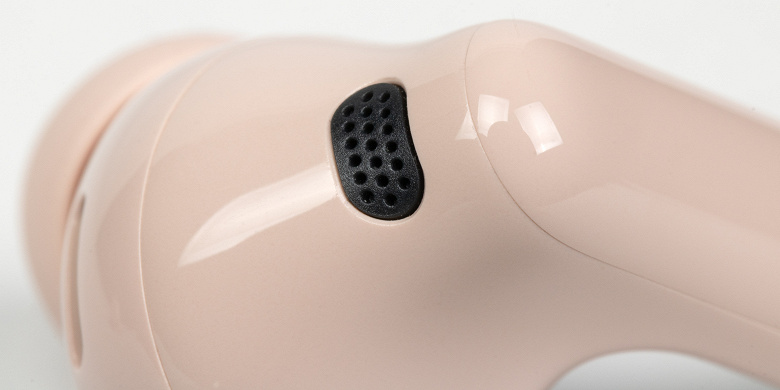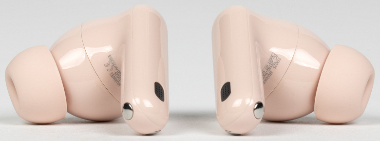 На верхнем торце «ножек» расположены внешние микрофоны системы активного шумоподавления, скрытые под черной перфорированной накладкой.