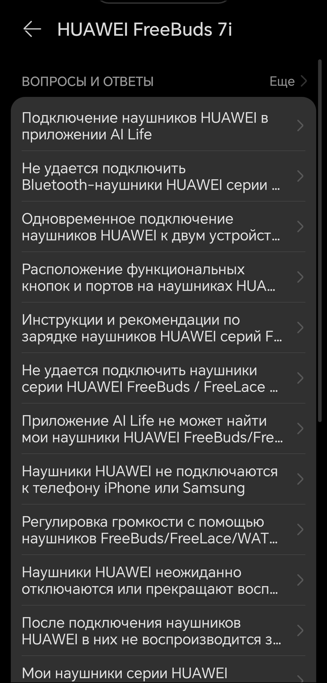 После первого открытия крышки гарнитура сразу активирует режим сопряжения, далее может потребоваться нажать кнопку на боковой части кейса в течение пары секунд. Наушники при этом должны находиться в внутри. Huawei FreeBuds 7i поддерживает Microsoft Swift Pair для соединения с устройствами, работающими на Windows. А вот Google Fast Pair по-прежнему отсутствует: есть только ускоренное сопряжение с гаджетами Huawei. Владельцам устройств других брендов придется воспользоваться стандартной процедурой через меню настроек — благо, она проста и занимает не больше пары минут.