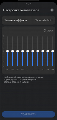 Количество доступных звуковых профилей не изменилось — их по-прежнему шесть. Правда, вместо симпатичных иконок теперь используется лаконичный текстовый список. В прошлой версии появилась возможность создавать свои пресеты с помощью 10-полосного эквалайзера, которая раньше была лишь в серии Pro — эта опция по-прежнему доступна, чему можно только порадоваться.