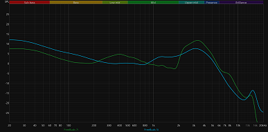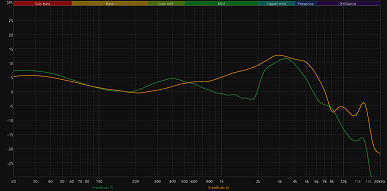 Для большей наглядности наложим график с активированным пресетом «Живая музыка» на используемую целевую кривую.