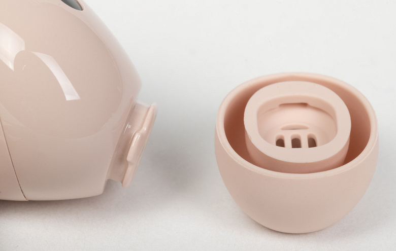 Отверстие звуковода прикрыто мелкой сеткой, немного утопленной вглубь корпуса — серьезных сложностей с ее очисткой не возникает. К тому же делать это придется не так уж часто: встроенные сеточки в силиконовых насадках эффективно задерживают загрязнения.