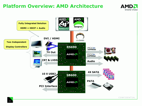 Однако пора обратиться и к виновникам торжества — чипсетам AMD 690G и 690V, ранее известным под кодовым названием RS690.