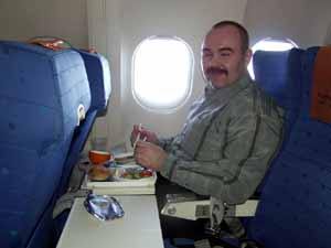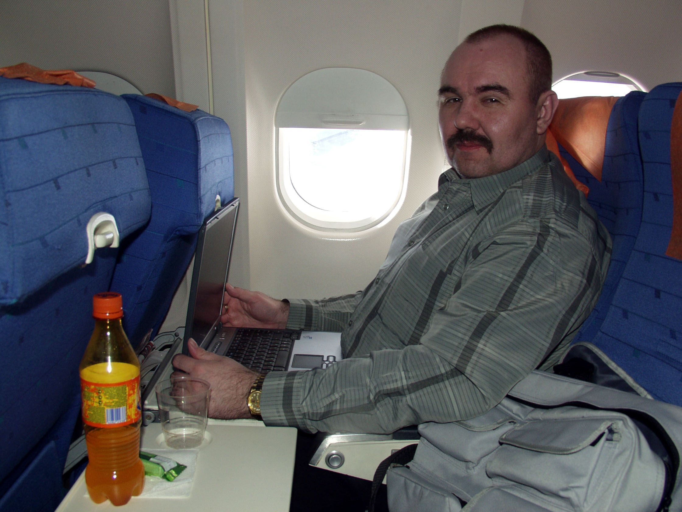 Разумеется, в процессе полета я не только смотрел в окно и держал наготове фотокамеру, но и обедал (слева), а также немного работал на ноутбуке (справа). Кстати, обеды были весьма вкусными (спасибо Аэрофлоту).