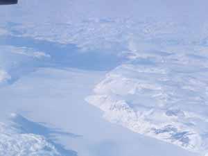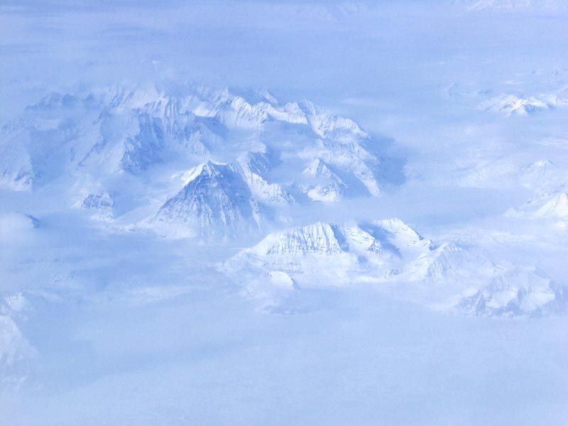 Продолжаем путешествие в картинках. Как видно из карты, приведенной выше, следом должна появиться заснеженная и пустынная Гренландия. Так оно и вышло. Действительно перед нами величественные владения Снежной Королевы, где только горы, белизна и покой.