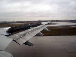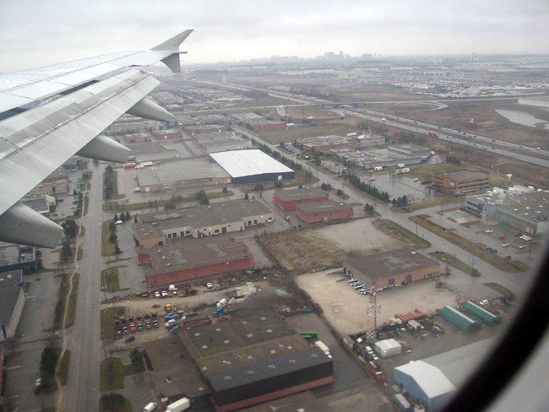 Конечно же, снизу, где мрачно и пасмурно, облака вовсе не блещут красотой. Но ничего не поделать, вот такой дождливой погодой и температурой всего +5 градусов выше нуля встретил нас Торонто (слева). Последние метры над землей, и мы уже катимся по посадочной полосе (справа). Здравствуй, Канада!